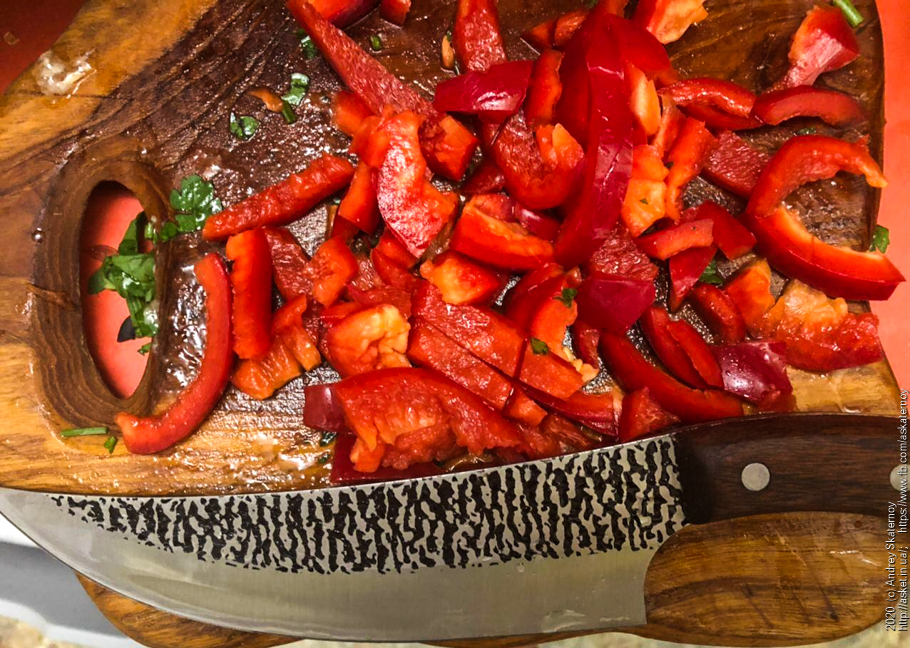 Добавляем. Совсем иное дело, правда? Даем потушиться до размягчения перца.