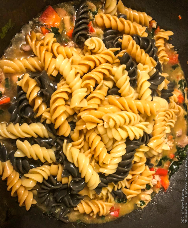 Но на самом деле все немножечко не так. В большинстве случаев макаронные изделия ака “паста” варят альденте – т.е. наползубика – полувареные, с твердой серединкой внутри. А потом переваливают на сковородку и дотушивают в заранее подготовленном соусе. Но и это ще не все. Мы – это то, что мы едим, а паста – это то, в чем она варилась.